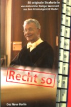 |  | Recht so 80 originale Strafurteile vom Amtsrichter Warnstädt aus dem Kriminalgericht Moabit »Warnstädt hat eine Mission - er demonstriert, daß man Recht auch in normaler Sprache sprechen kann.« (Jutta Voigt, Die Woche) Verlag Das Neue Berlin, 2003 Broschiert: 223 Seiten ISBN: 978-3-360-00993-7 Ab Mitte Juni 2007 in Neuauflage wieder lieferbar, Buch bestellen: | beim Verlag | | bei Amazon | | |